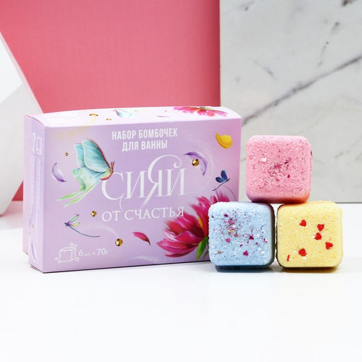 Набор бурлящих кубиков для ванны "Сияй от счастья!", 6 шт по 70 г