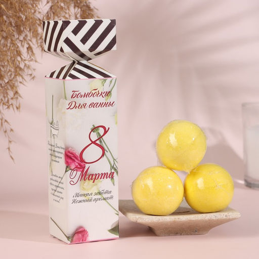 Бомбочки для ванны "С 8 марта, полосы", аромат лимон, 3 шт