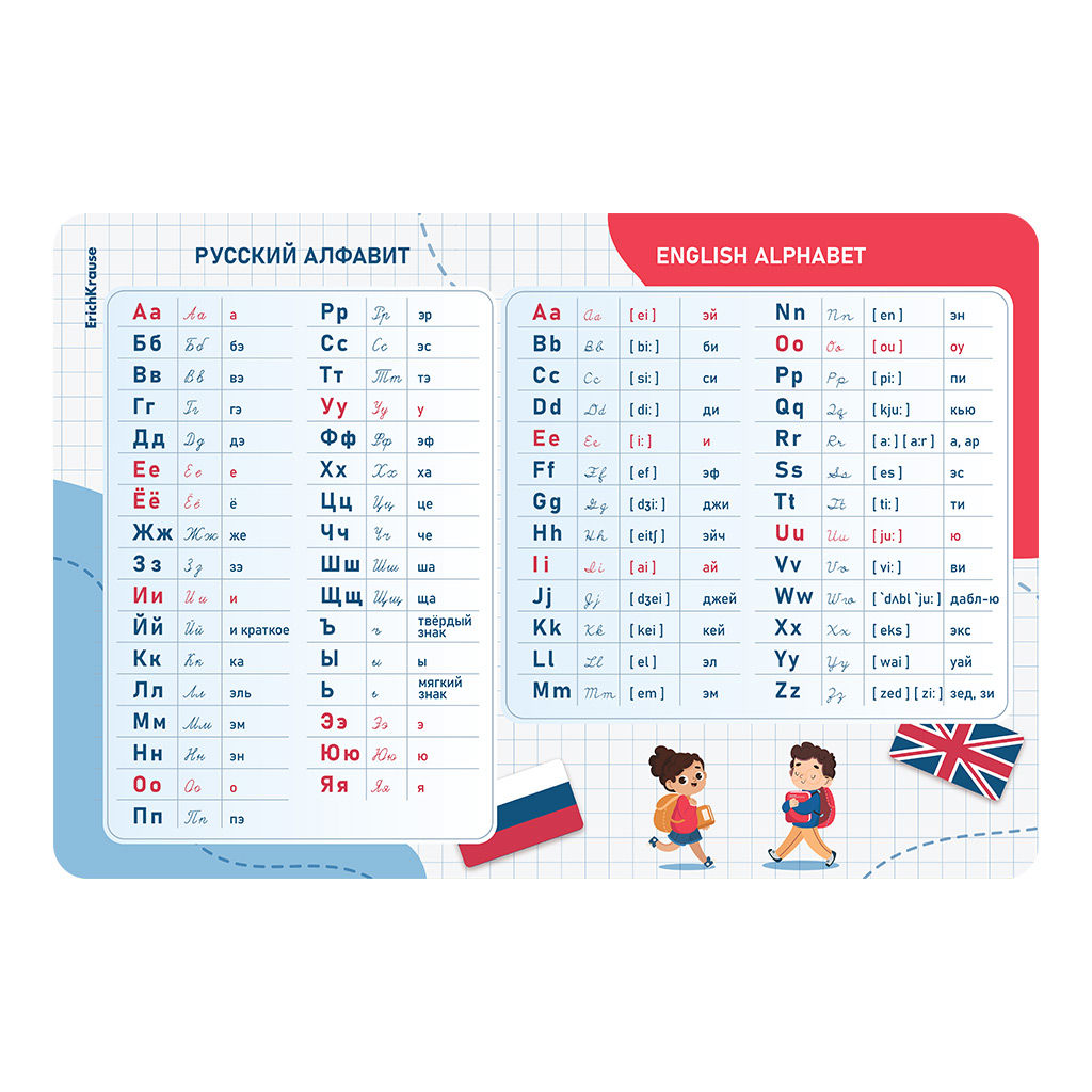 Цена за 12 шт. Подкладка настольная пластиковая ErichKrause русский и английский алфавит, А3 (в пакете по 12 шт.)