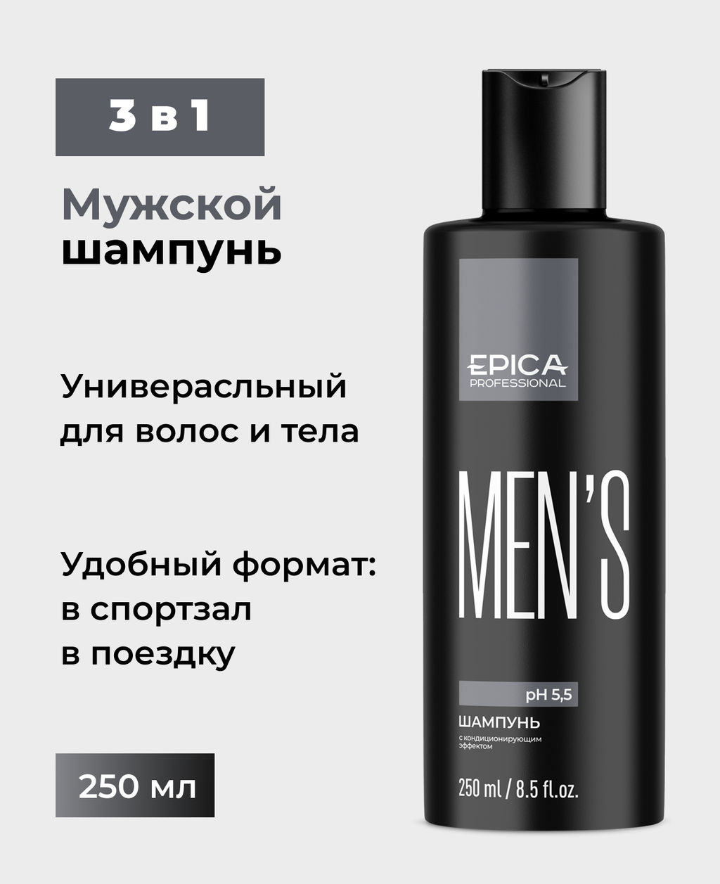 EPICA "MENS 3 in 1" Мужской гель для душа, шампунь и кондиц.250мл. с охл эфф., маслом апельс
