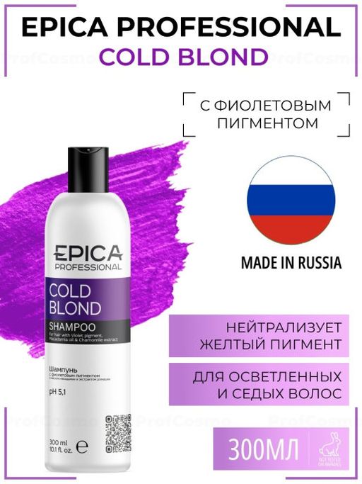 EPICA Cold Blond Шампунь с фиолетовым пигментом, 300мл.с маслом макадамии и экстрактом ромашки