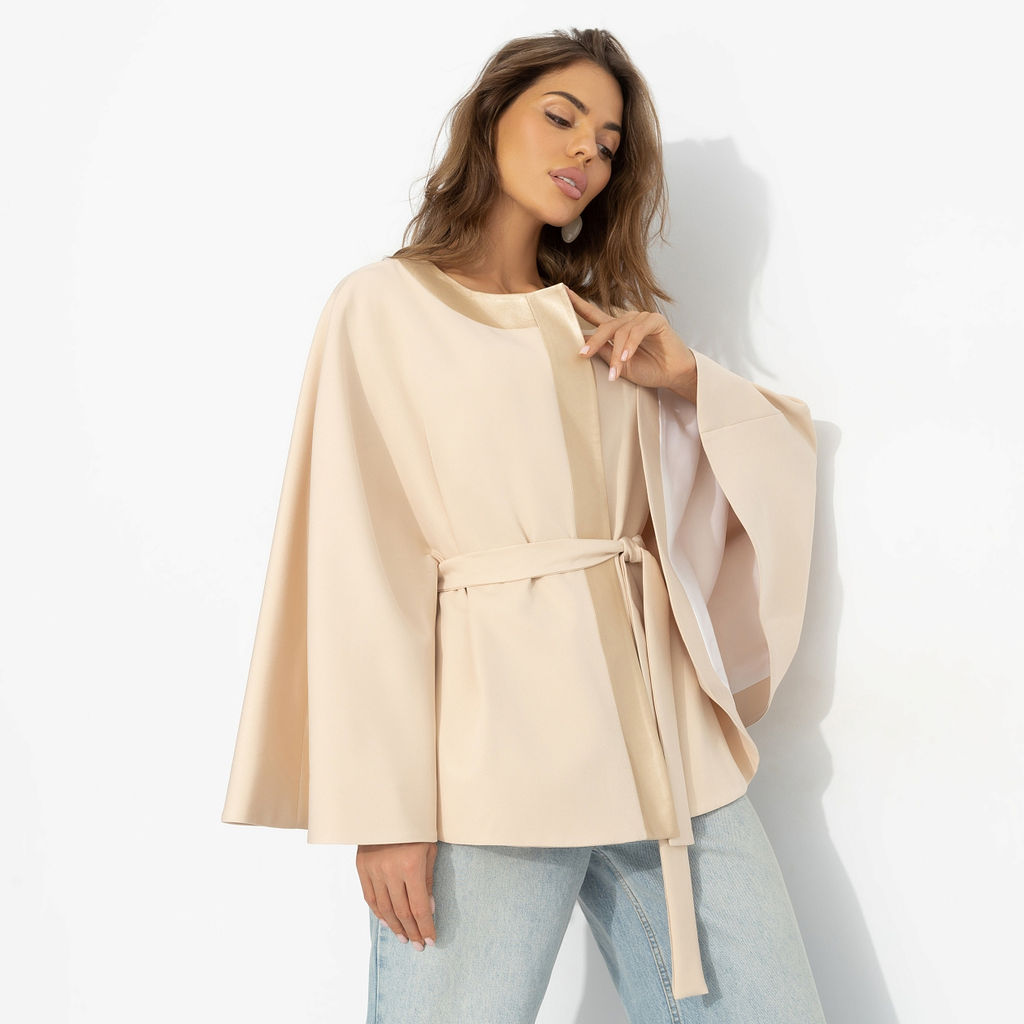 Жакет&#8209кейп на подкладе, Яркий эффект (с поясом)