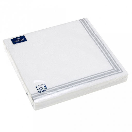 Салфетки бумажные "Art Bouquet" 33х33см, 3-х слойные, 16 штук в упаковке, 100% целлюлоза, "Барокко. Рамка Серебряная" (Россия)
