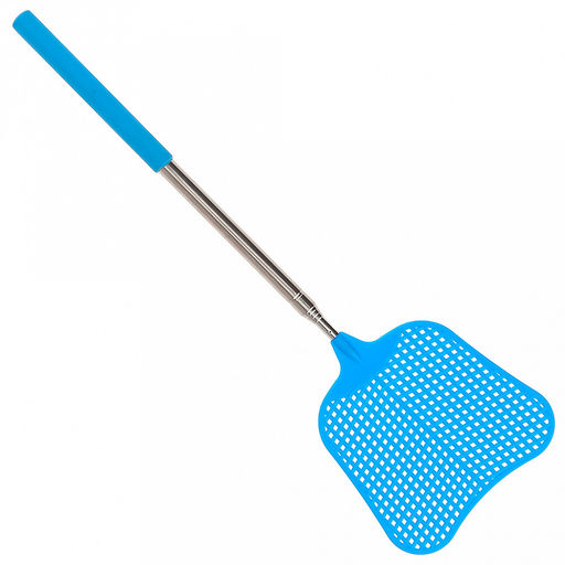 Мухобойка пластмассовая 11х10,5х0,1см, длина 35,5-110см, раздвижная металлическая рукоятка 23-96,5см, с антискользящим наконечником, цвет голубой (Китай)
