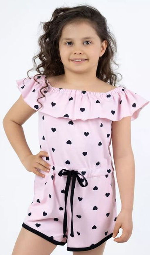 Комбинезон д/д Мила, цвет Черные Сердечки на розовом,100% х/б