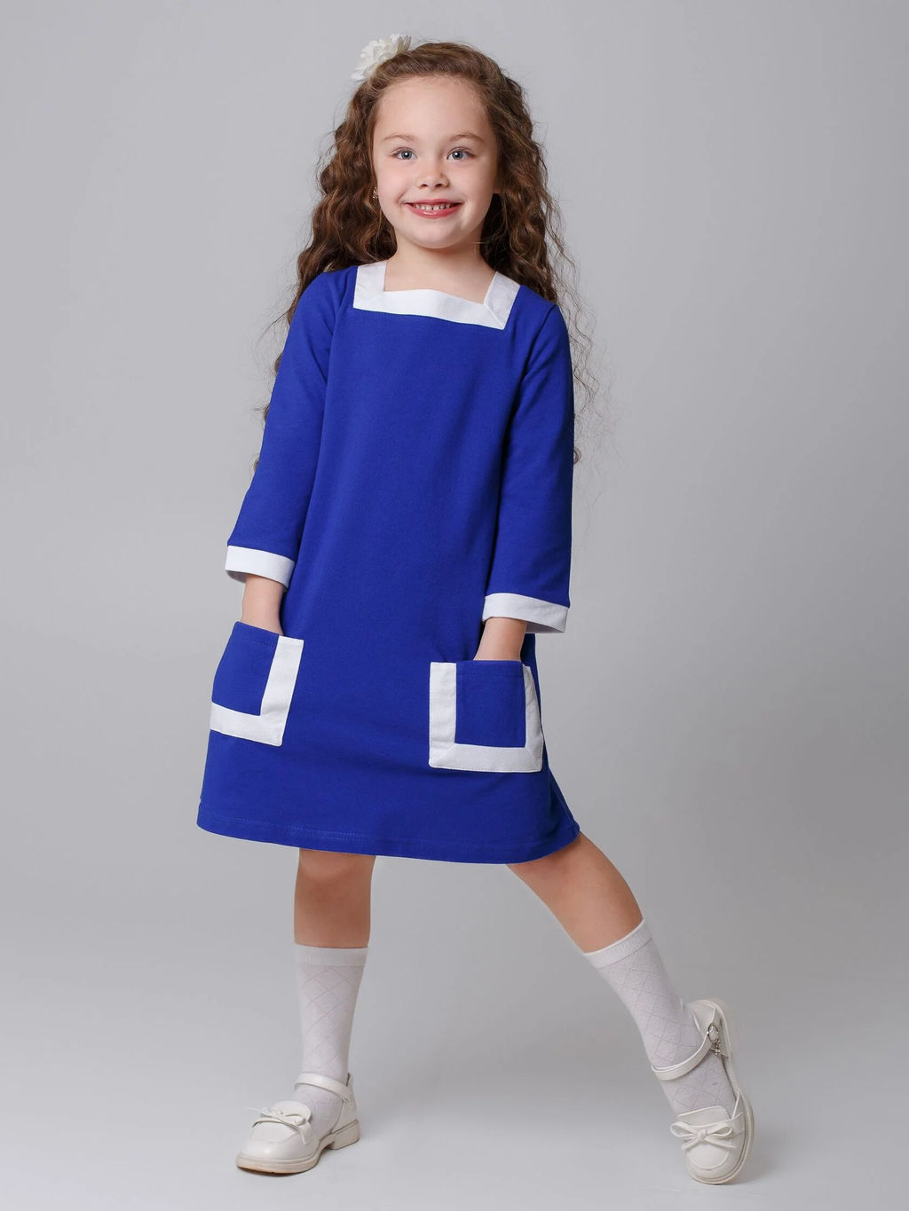 Платье Ретро рукав 3/4 васильковый, пике