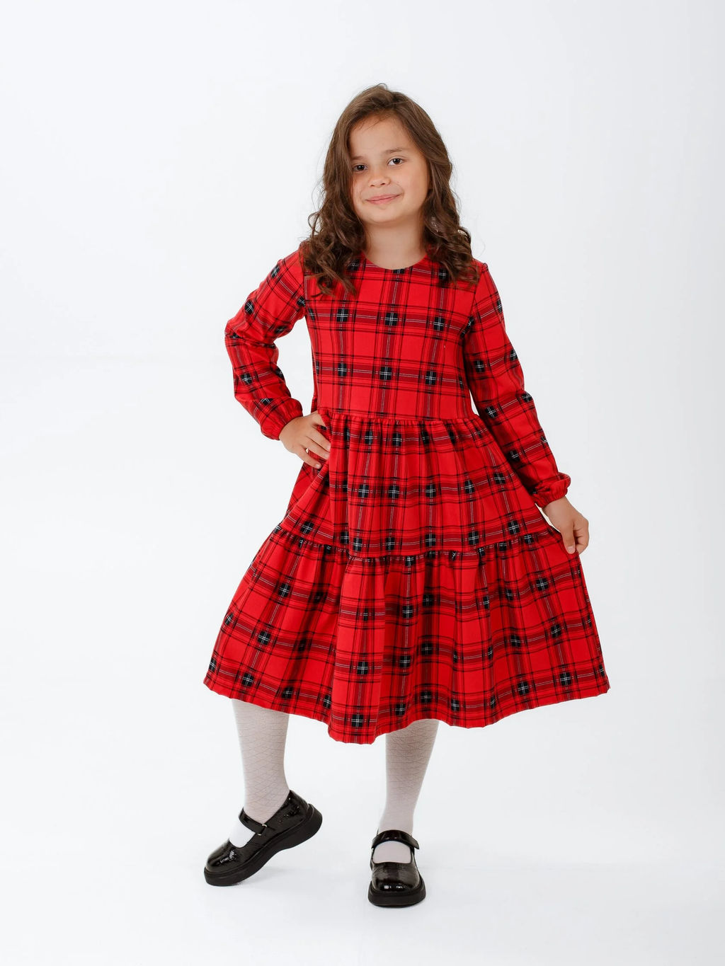 Платье Роза в клетку, цвет Красный-Клетка крупная, 78%х/б,16%пэ,6%л