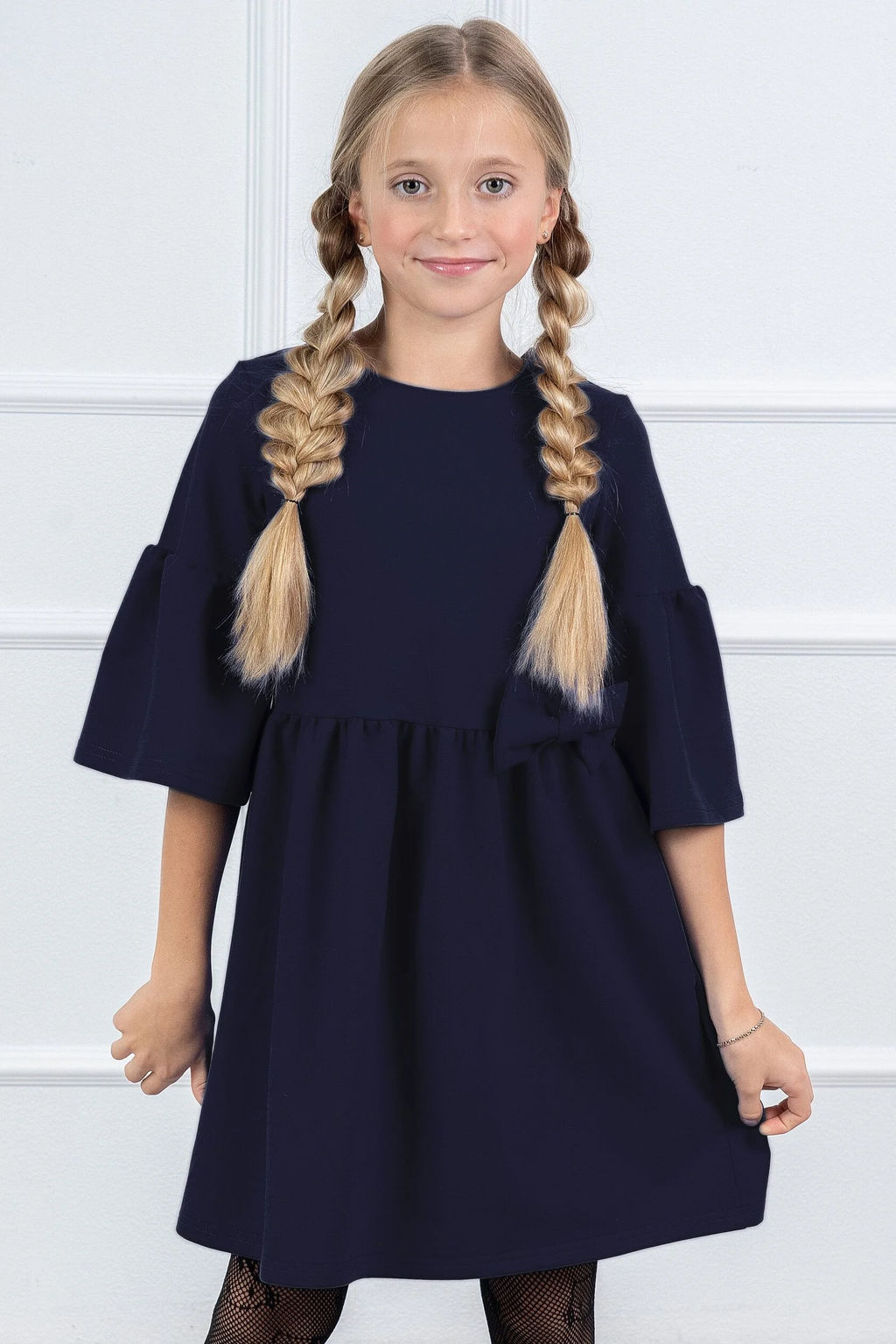 Платье Лидия с бантом, цвет т.Синий, 78% х/б 16% пэ 6% лайкра