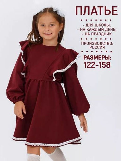 Платье Машенька с кружевом, цвет Бордовый, 74%х/б, 20%пэ, 6%лайкра