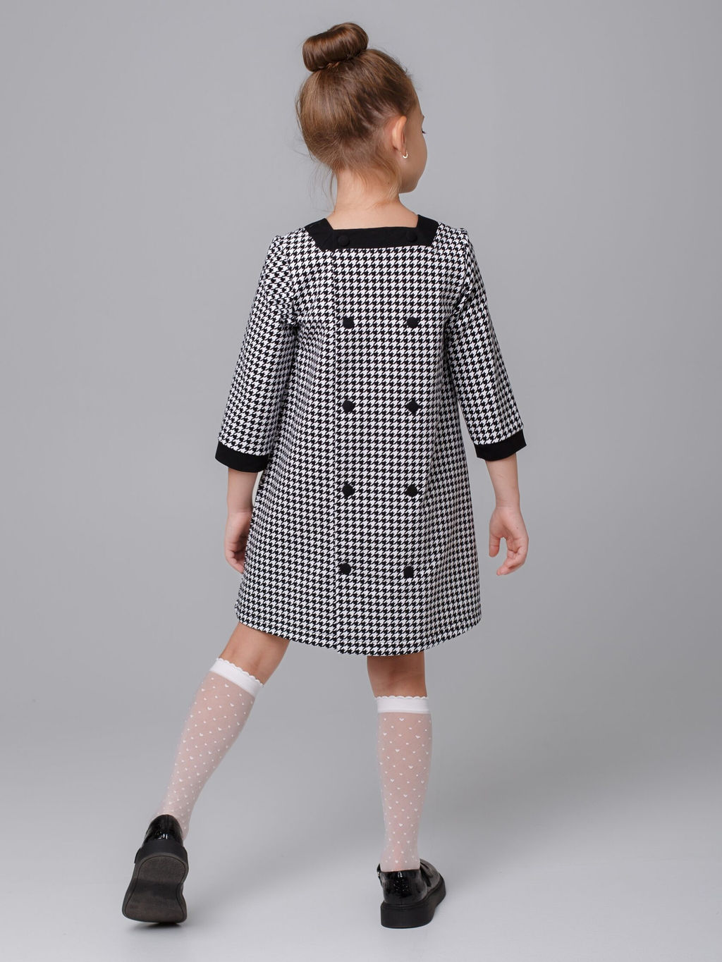 Платье Ретро ФУ рукав 3/4, цвет Черн/бел(Гус.лапки),78%х/б,16%пэ,6%л