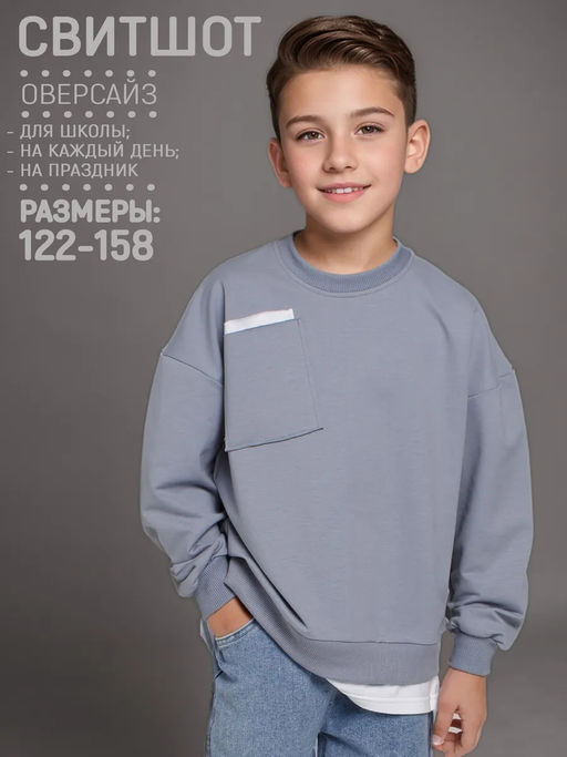 Свитшот Модный с имитацией, цвет Серый, 78%х/б,16%пэ,6%л
