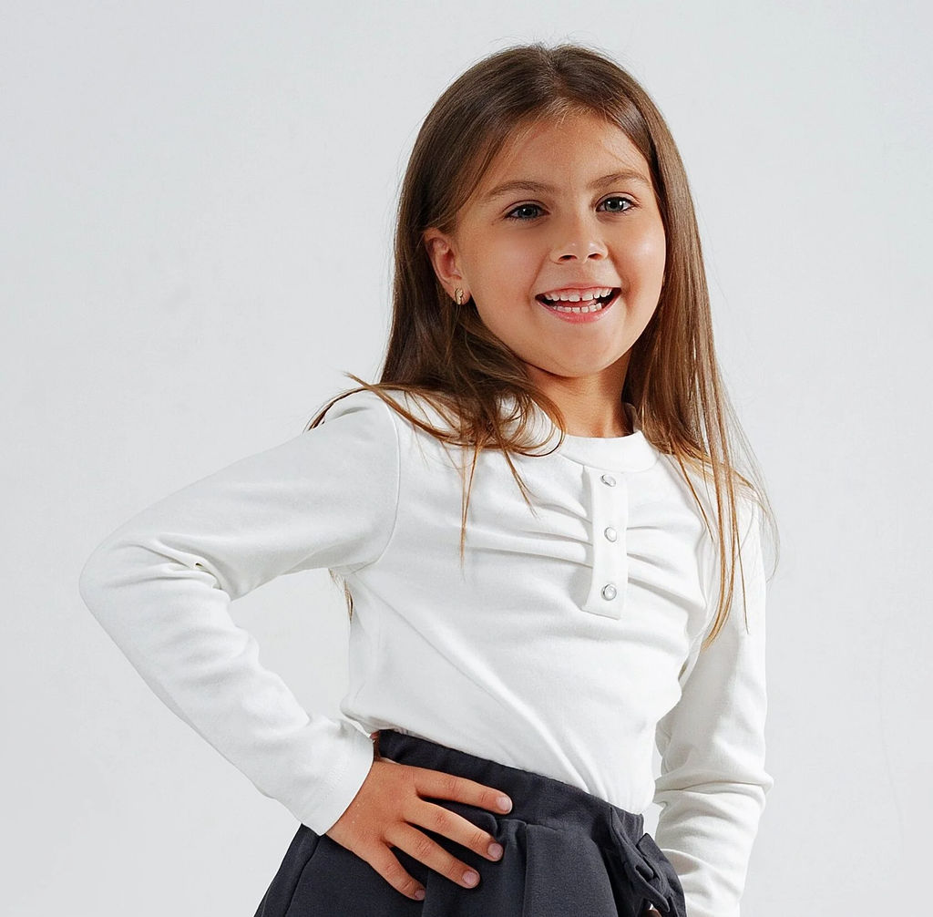 Лонгслив с кнопками, интерлок, белый х/б 100%