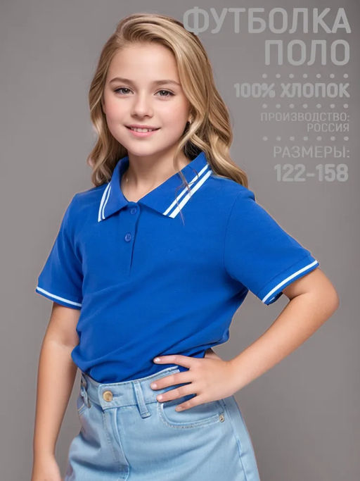 Футболка детская Поло, кор. рукав, цвет Васильковый, пике карде, 100% х/б