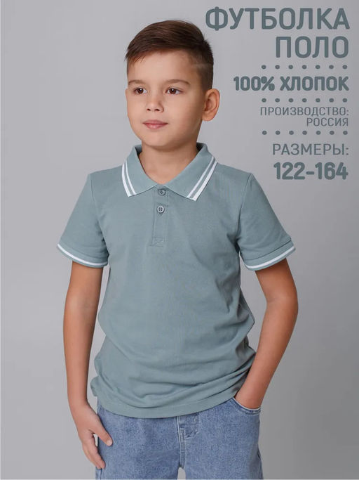 Футболка детская Поло, кор. рукав, цвет Серо-зелёный, пике, 100% хлопок
