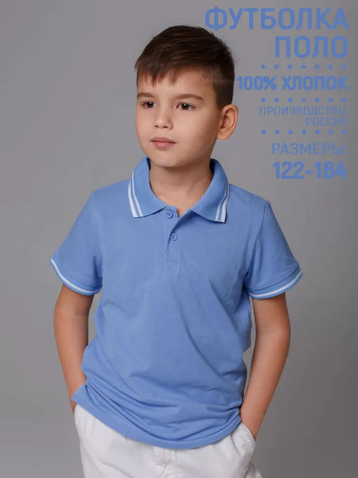 Футболка детская Поло, кор. рукав, цвет Голубой, пике, 100% х/б