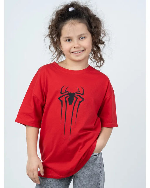 Футболка Эштон оверсайз Принт-Паук, цвет Красный, кулирка 100% х/б