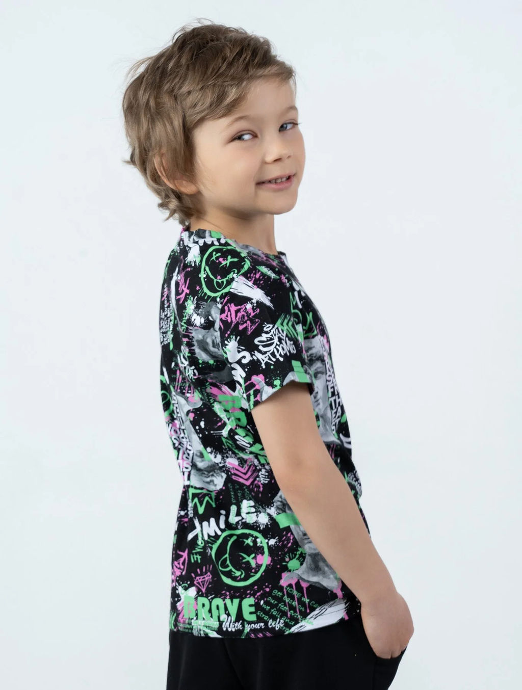 Футболка с воротником, цвет Черный/Зелен-Розов Brave,100% х/б