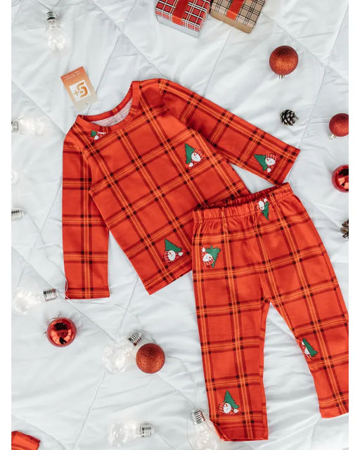 Набор дет.(пижама),цвет Красный(алый) Елка-Снеговик, 100% х/б