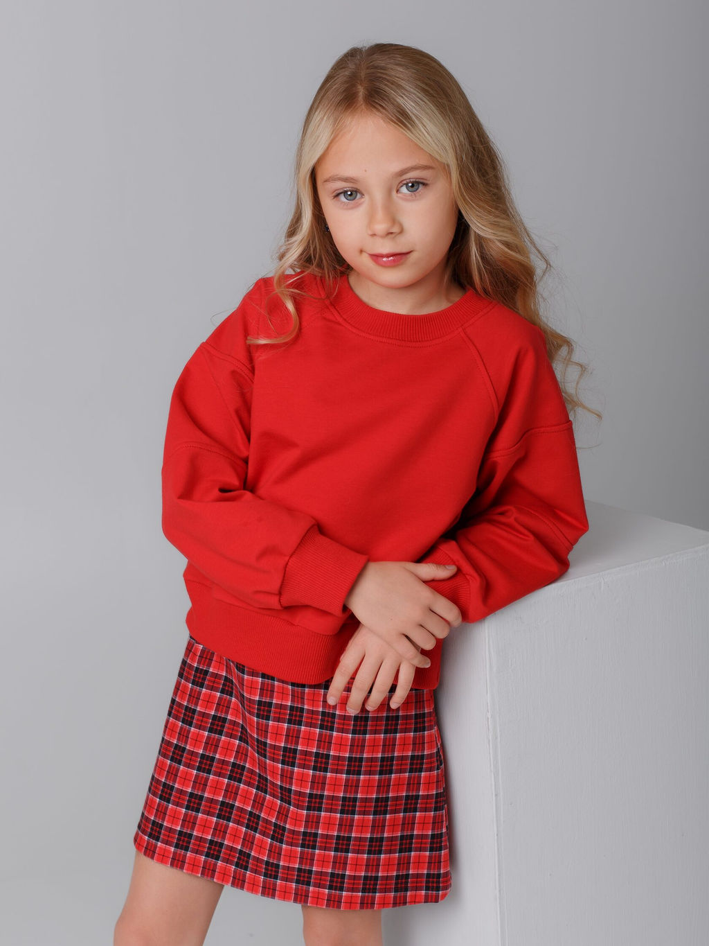 Костюм Мишель(Свит+юбка), ФУ цвет Красн/Клетка,78%х/б,16%пэ,6%л