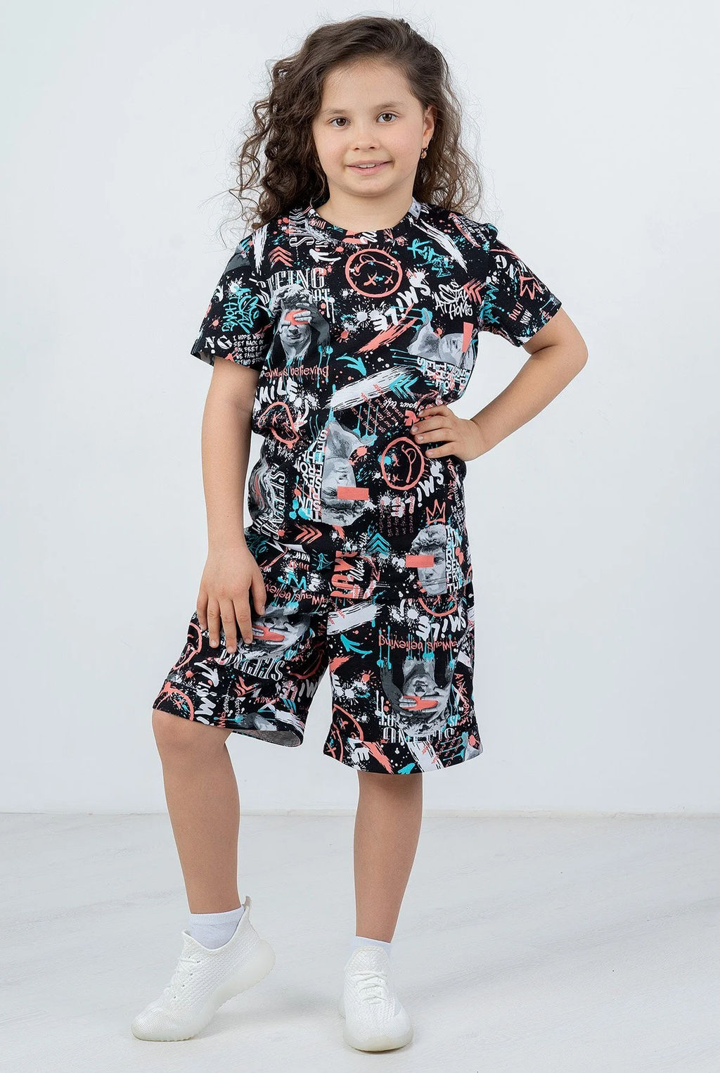 Шорты с карманами Эбби, цвет Черный/Морков-Бирюз Brave, КУ 100%х/б