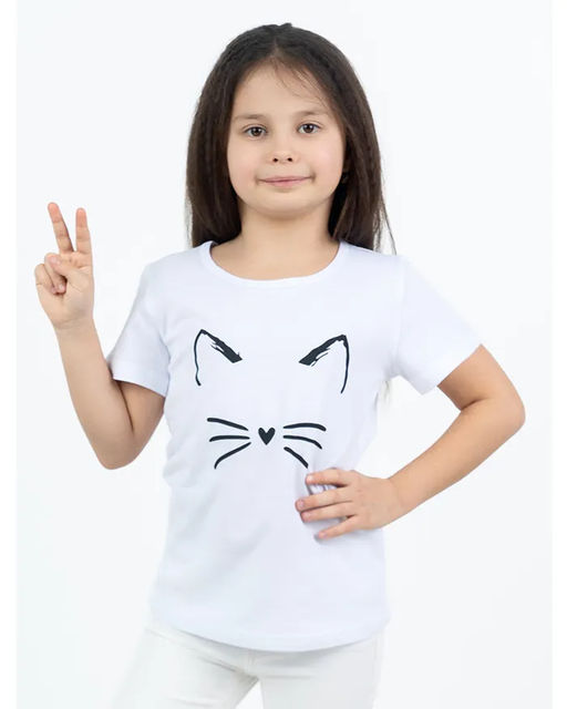 Футболка д/д принт Кошка, цвет белый, 100% х/б