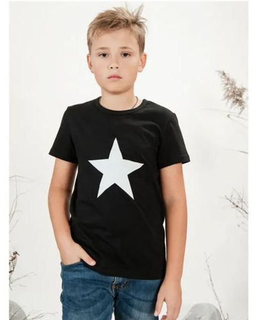 Футболка д/м принт "Звезда", цвет чёрный, 100% х/б