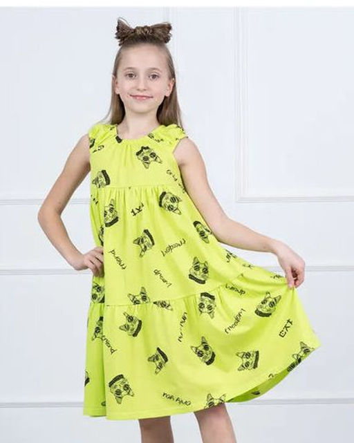 Платье сарафан Алина (Кот в очках) цвет Лайм,100% хлопок
