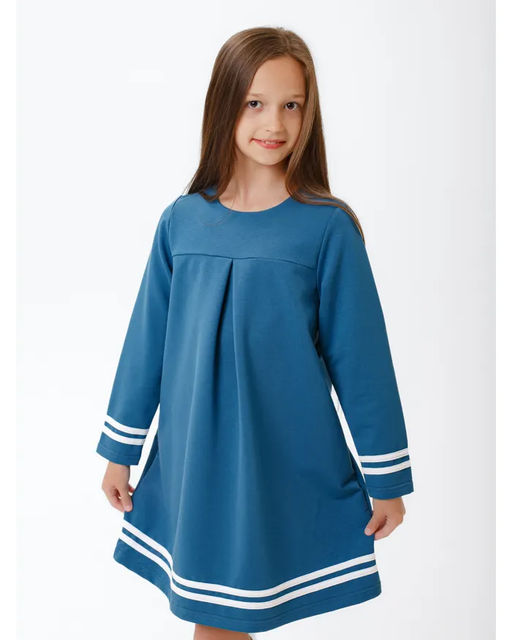 Платье Лада с лампасами, цвет Индиго, 78%х/б, 16%пэ, 6%лайкра