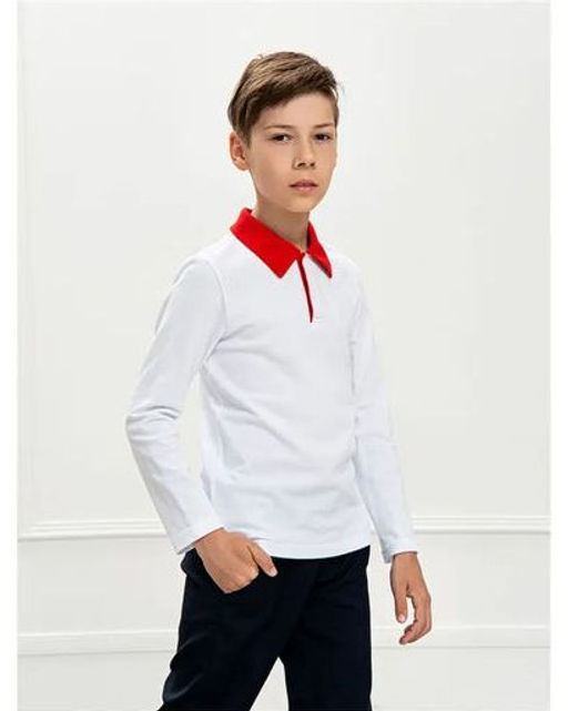 Футболка Поло д/м длинный рукав, цвет белый-красный, 100% х/б