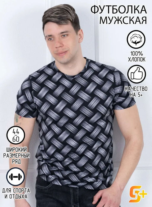 Футболка Мужская(воротник) шины серые на черном, кулирка х/б 100%