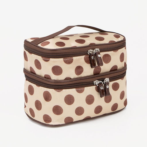 Косметичка, 2 отдела на молниях, цвет бежевый/коричневый