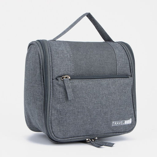 Косметичка-несессер на молнии, с крючком, наружный карман, цвет серый