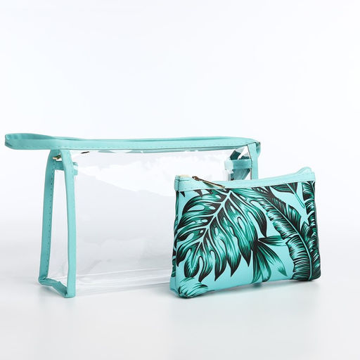Набор косметичек 2 в 1 на молниях, цвет зелёный