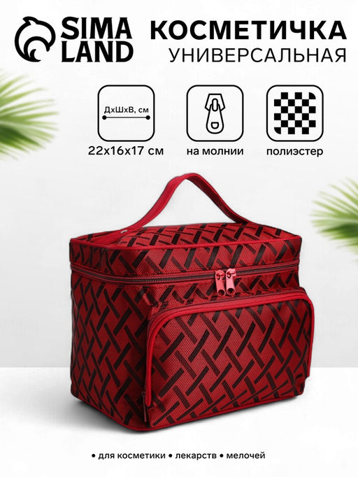 Косметичка на молнии, с зеркалом, цвет бордовый