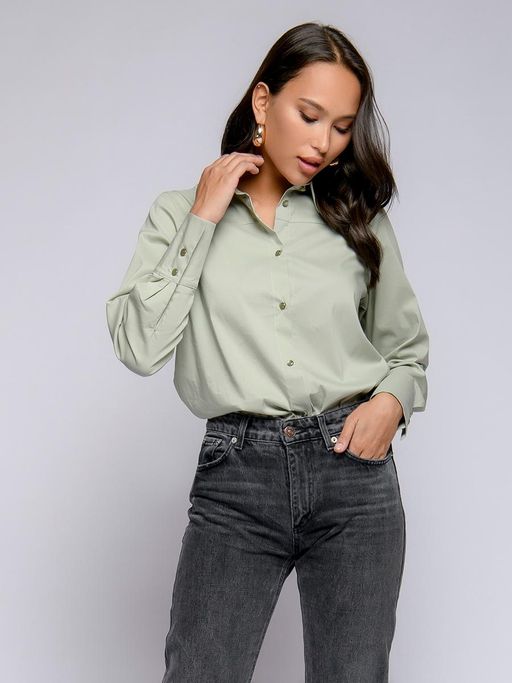Рубашка фисташкового цвета удлиненная