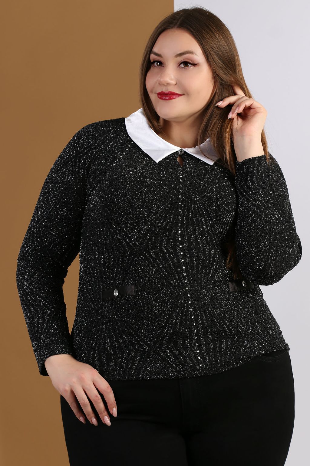 Блузка черная с белым воротником