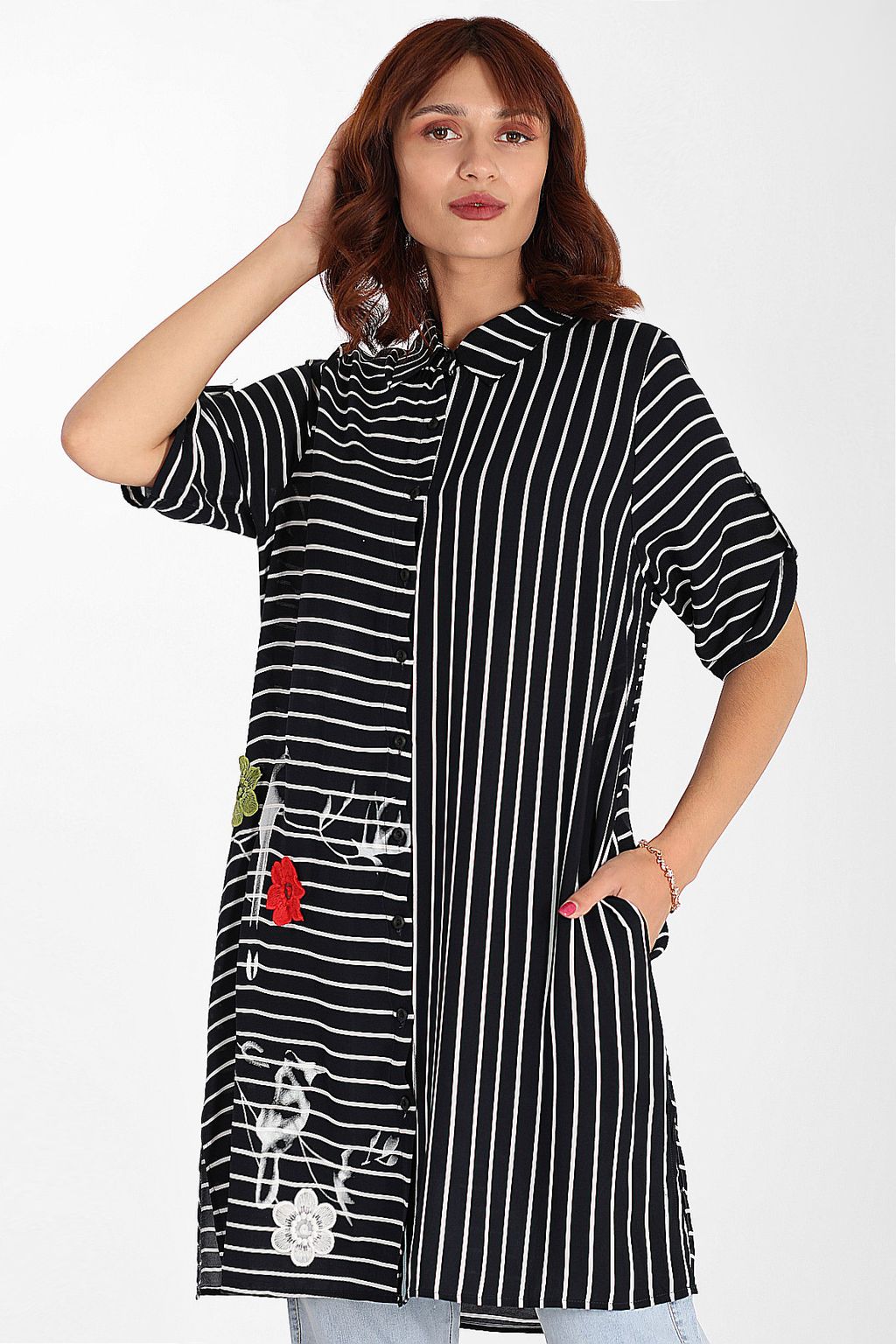 Рубашка черная женская в полоску