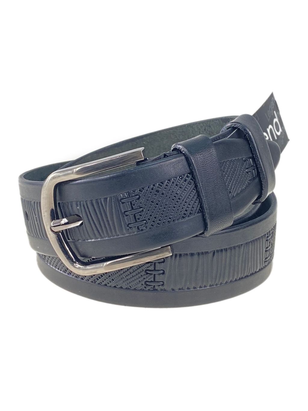 Ремень мужской из натуральной кожи сорнаментом, цвет черный
