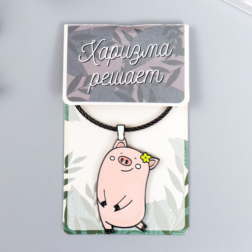 Брелок металл на тросе "Танцующая свинка с цветочком" эмаль 9,7 см