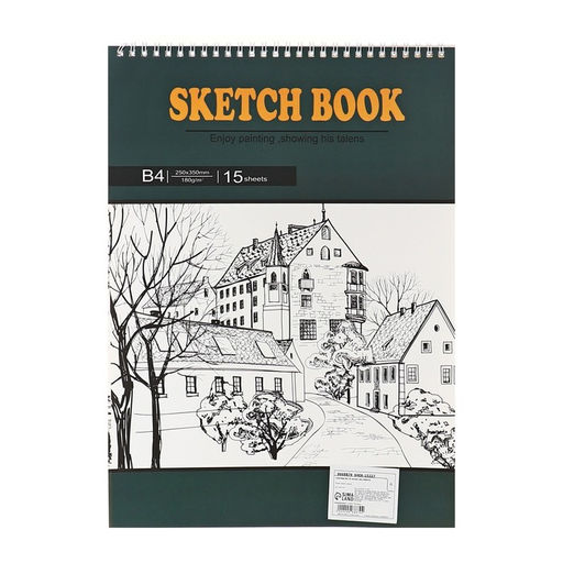 Скетчбук В4 15 листов, жесткая подложка,листы зернистые по типу холста,пл.180 гр,Город МИКС