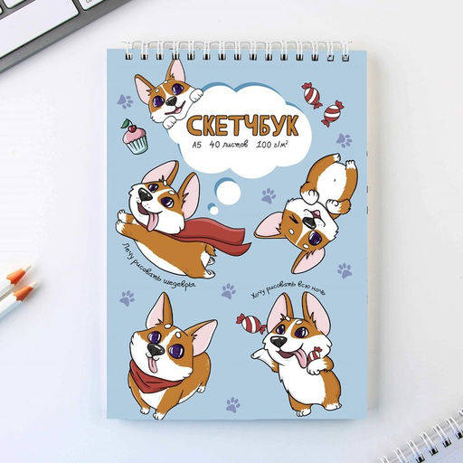 Скетчбук А5, 40 л 100 г/м2 Корги