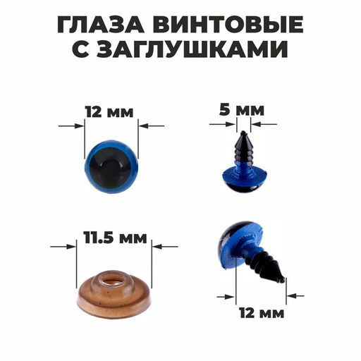 Глаза винтовые с заглушками, полупрозрачные, набор 4 шт., цвет голубой, размер 1 шт: 1,2 1,2 см