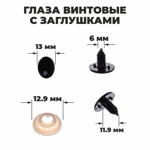 Глаза винтовые с заглушками, набор 4 шт., размер 1 шт: 1,65 1,3 см