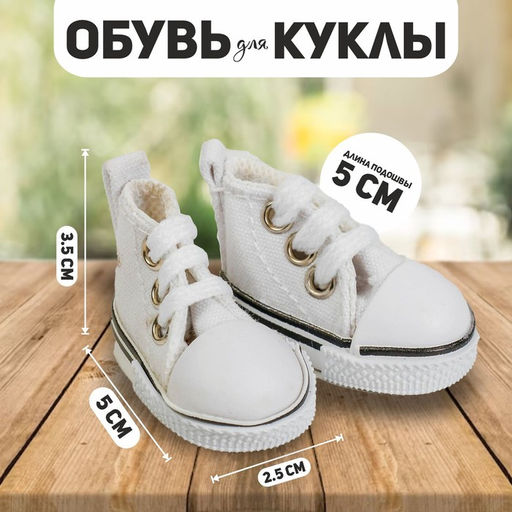 Кеды для кукол, длина подошвы 5,3 см, цвет белый