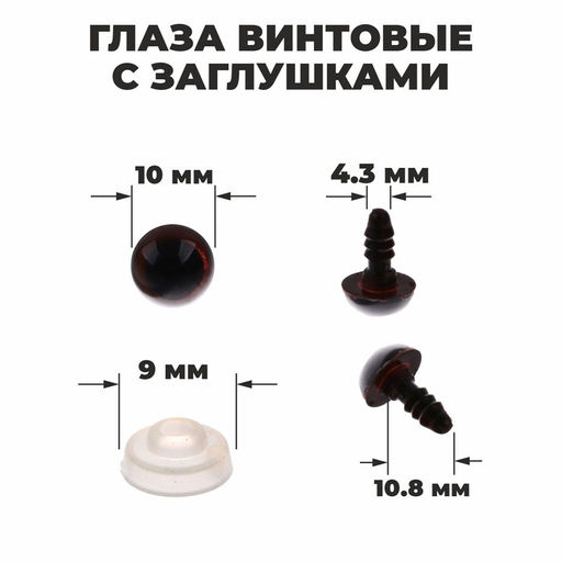 Глаза винтовые с заглушками, полупрозрачные, набор 4 шт, цвет коричневый , размер 1 шт: 11 см