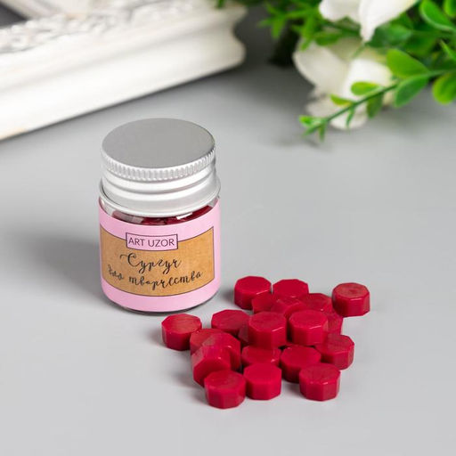 Цена за 2 шт. Сургуч в гранулах в баночке "Восьмигранник" вишневый 9 гр 4,5х3х3 см