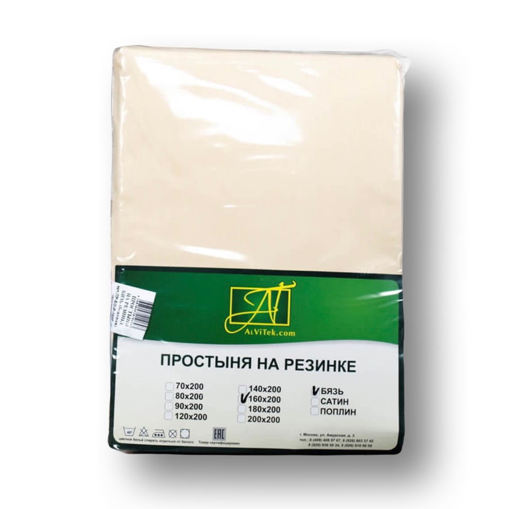 ПР-ПО-Р-200-БЕЖ Бежевая простыня Поплин однотонная на резинке 200х200х25