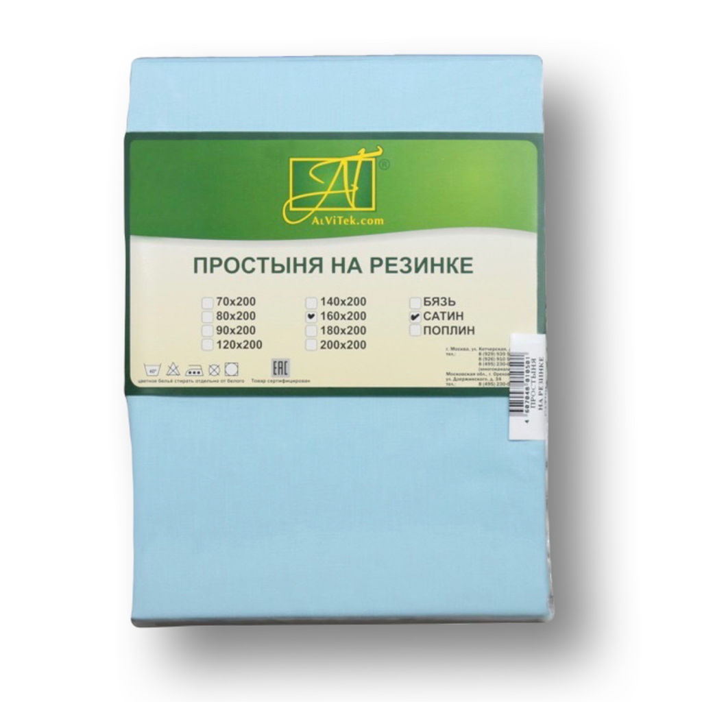 ПР-СО-Р-090-ГОЛ Голубая простыня Сатин однотонный на резинке 90х200х25