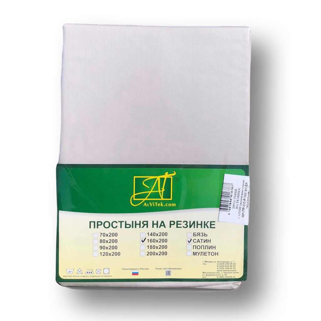 ПР-СО-Р-200-ЖСЕР Жемчужносерая простыня Сатин однотонный на резинке 200х200х25