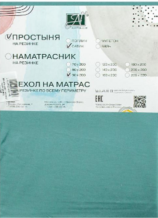 ПР-СО-Р-200-БИР Бирюза простыня Сатин однотонный на резинке 200х200х25
